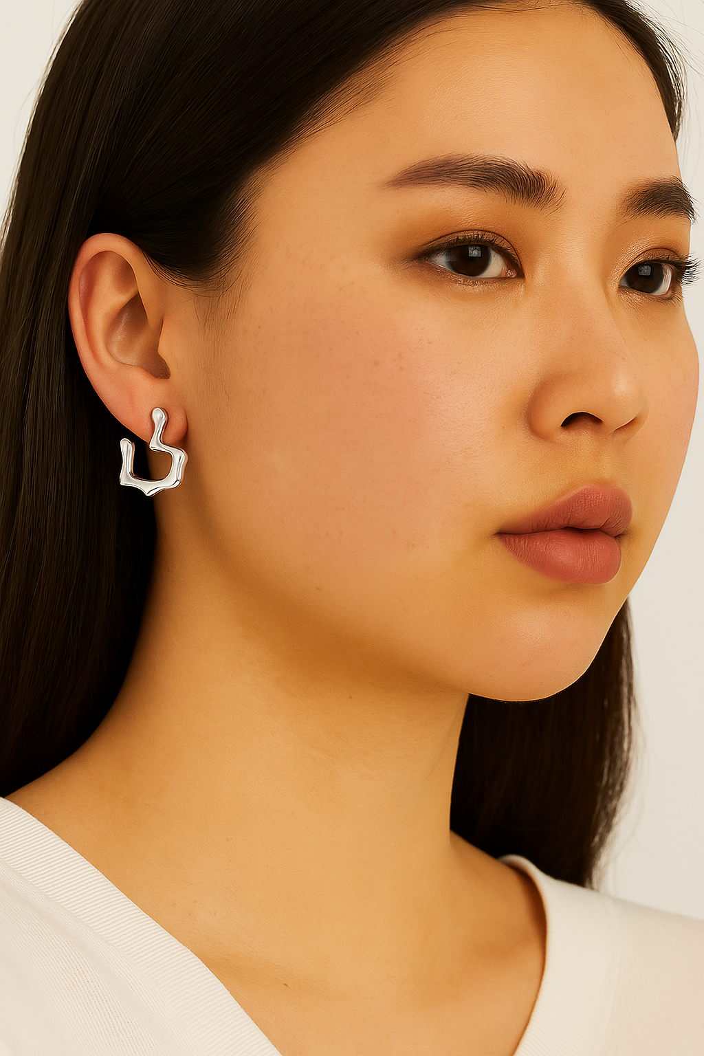 Stainless-steel hartjes oorbellen met een moderne, organische vorm. De glanzende, abstracte contouren geven een stijlvolle en eigentijdse uitstraling die perfect is voor zowel alledaagse looks als speciale gelegenheden.