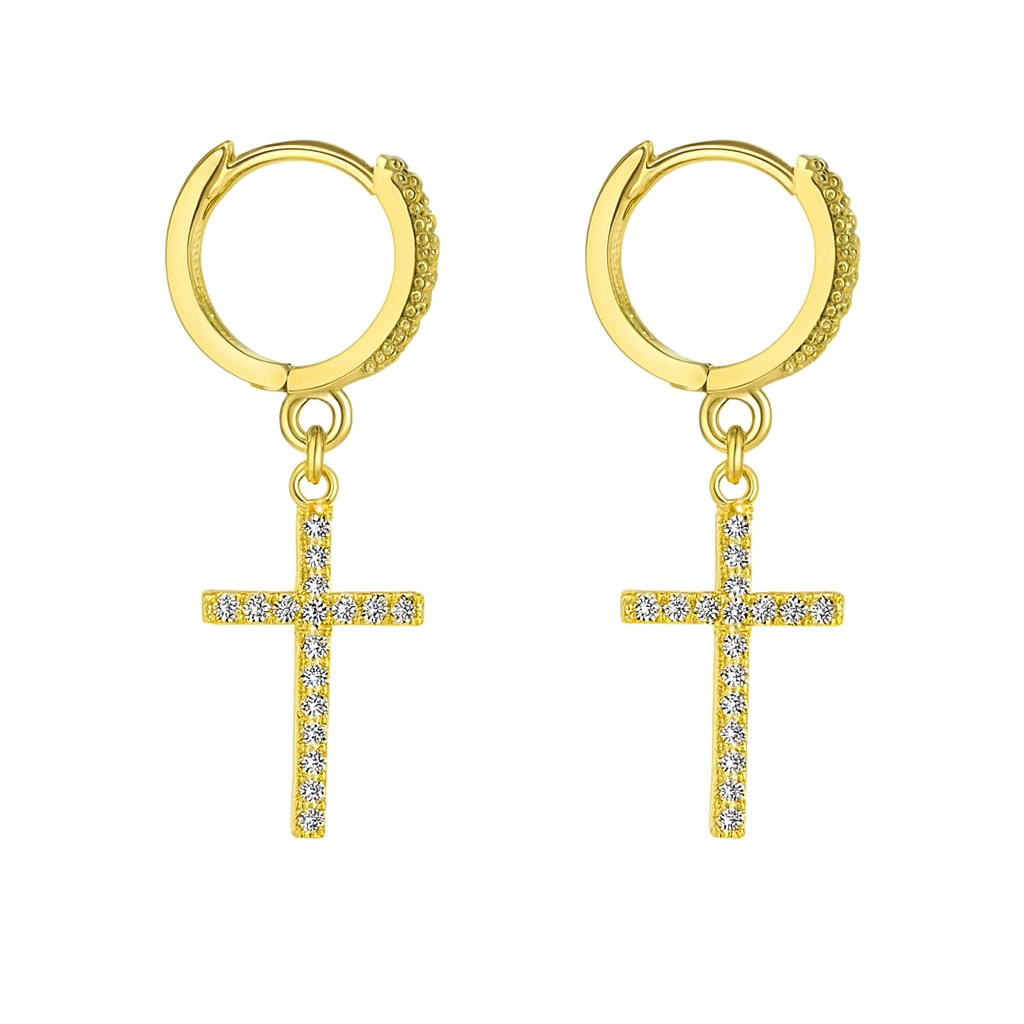 Stijlvolle gouden oorbellen met een sprankelend kruisje dat subtiel meebeweegt, perfect voor een elegante, maar toch dagelijkse look.